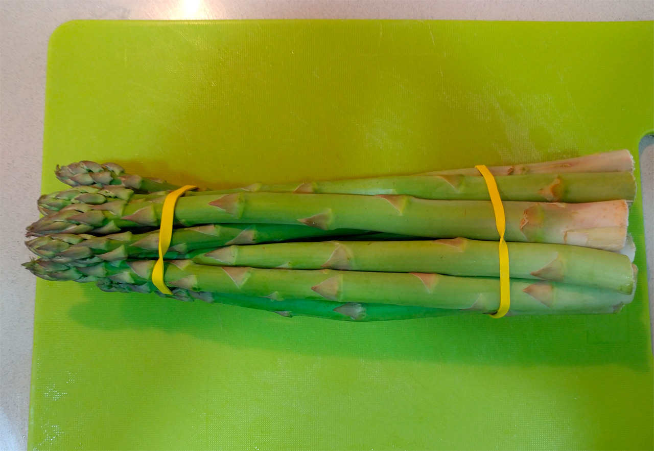 Берем пучок толстой зеленой спаржи. Толщина должна быть не менее 0,7-1,2 см. - возьмите в магазин штангенциркуль и как следует заштангенциркулируйте это дело.