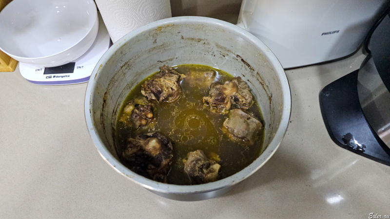 Девять часов прошло - вот наш бычий хвост в бульоне.