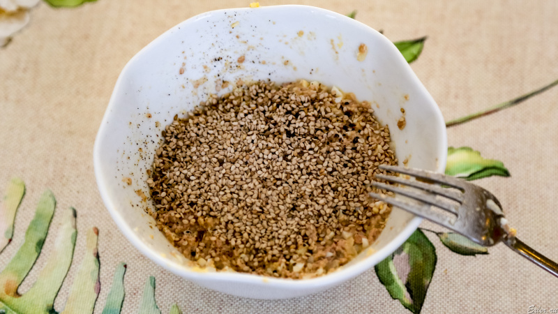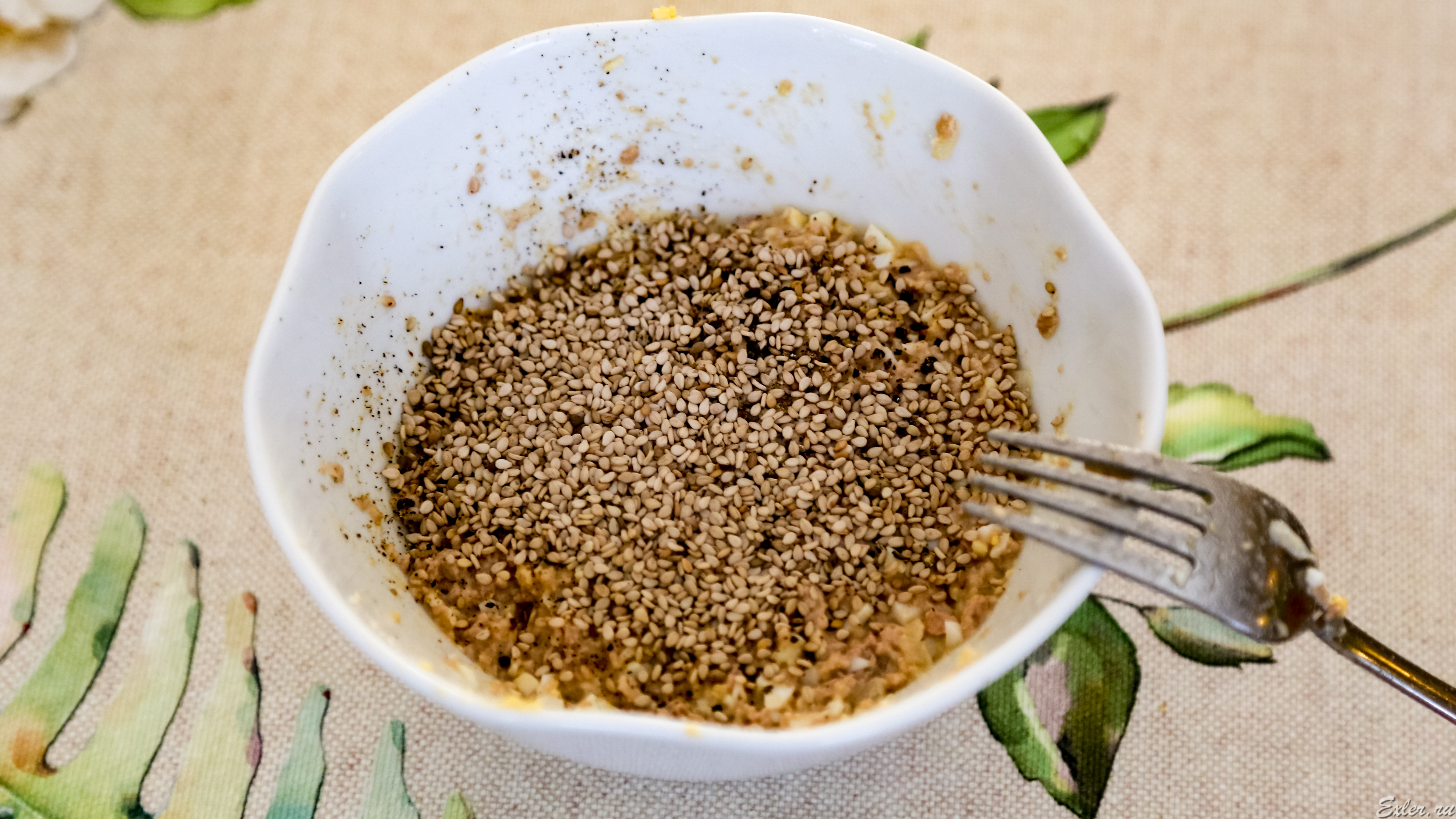 Поэтому данный этап пропускаем и переходим к финальному этапу: добавляем черный перец и семечки кунжута. Если семечек кунжута нет, то без них спокойно можно обойтись, но с ними будет лучше.