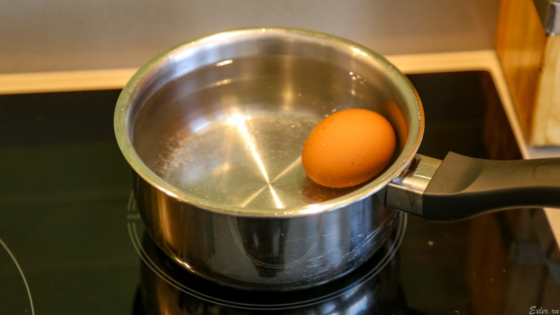 Прежде всего, ставим вариться яйцо, которое должно быть крутым (10 минут варки). В салат идет одно яйцо примерно на 250 граммов печени, так что если берете полкило печени (это уже с учетом гостей), то нужно сварить два яйца.