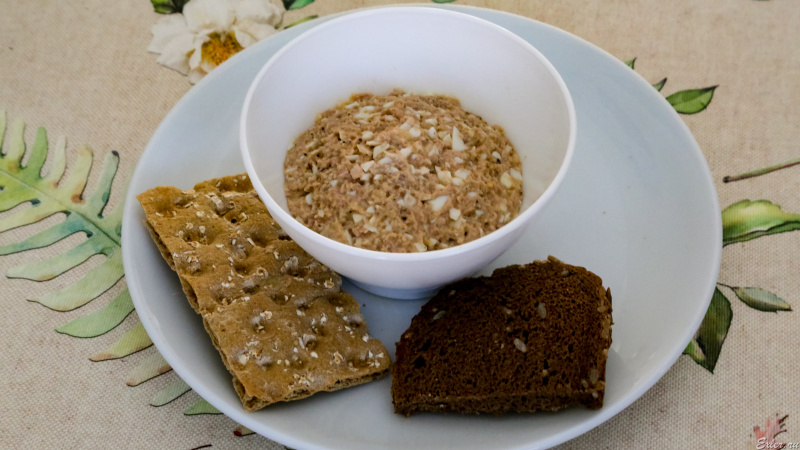 Теперь отвечаем на вопрос, как его употреблять. Да, его можно есть просто в качестве закуски, однако вкуснее всего есть этот салат, кладя его на  knäckebröd, поджаренный в тостере темный хлеб или на черный хлеб, вот так будет вкуснее всего. Собственно, гости у меня данный салат с поджаренным хлебом так и едят. В прошлый раз они даже не дождались, когда хлеб поджарится в тостере: умяли весь салат, кладя его на чипсы, приготовленные для детей. Это было легкое извращение, но гостям в моем доме дозволяется многое.