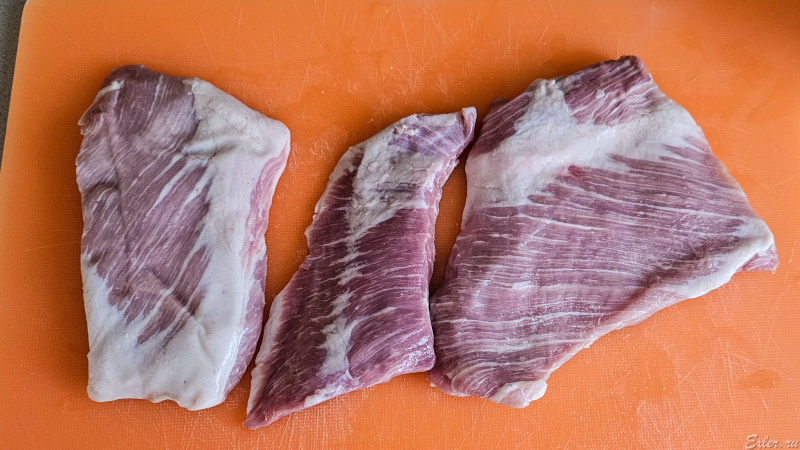 Итак, берется соответсвующий отруб свинины - нетолстый, с достаточным количеством жира.