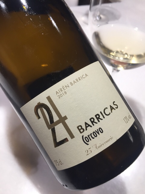 Теперь, когда процесс запущен, можно выпить первый бокал. И тут я пробую совершенно новое для меня вино из бодеги Corcovo - Megía e Hijos 24 Barricas Airén 2018. Сорт винограда - айрен. Сорт очень распространенный, но я почему-то никогда с ним не сталкивался: самые крупные испанские производители белого используют альбариньо, бердехо, реже - совиньон блан.