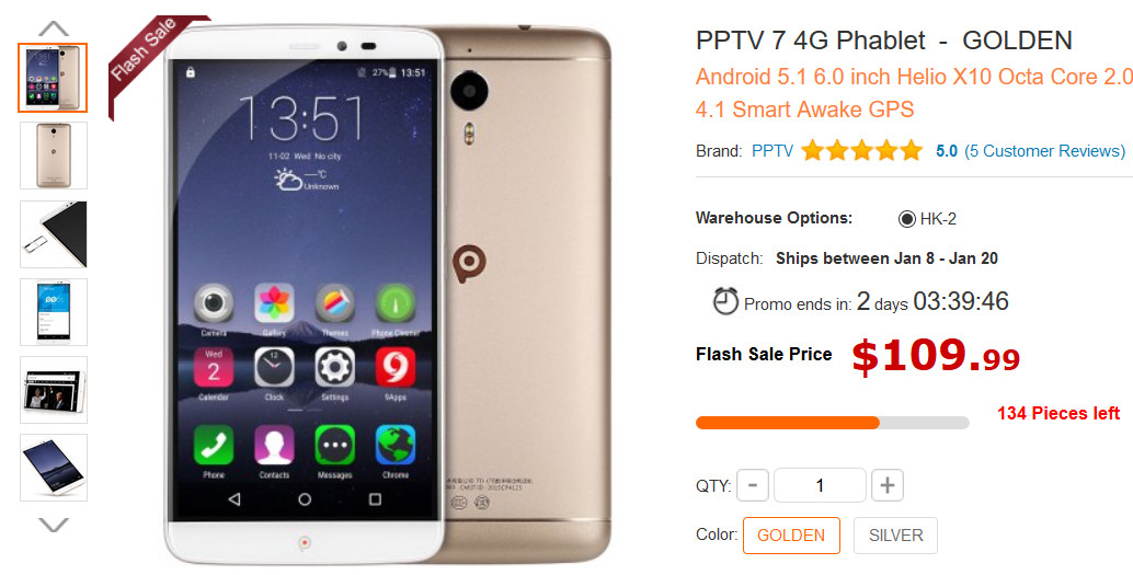 Мне об этом смартфоне читатель написал. Полностью называется PPTV King 7. Характеристики: шестидюймовый дисплей 2560x1440, платформа Helio X10 Turbo, памяти 3/32 (плюс microSD), камера 13Мп, аккумулятор 3610 мАч, металлический корпус. И это все - за $134, что казалось слегка невероятным.