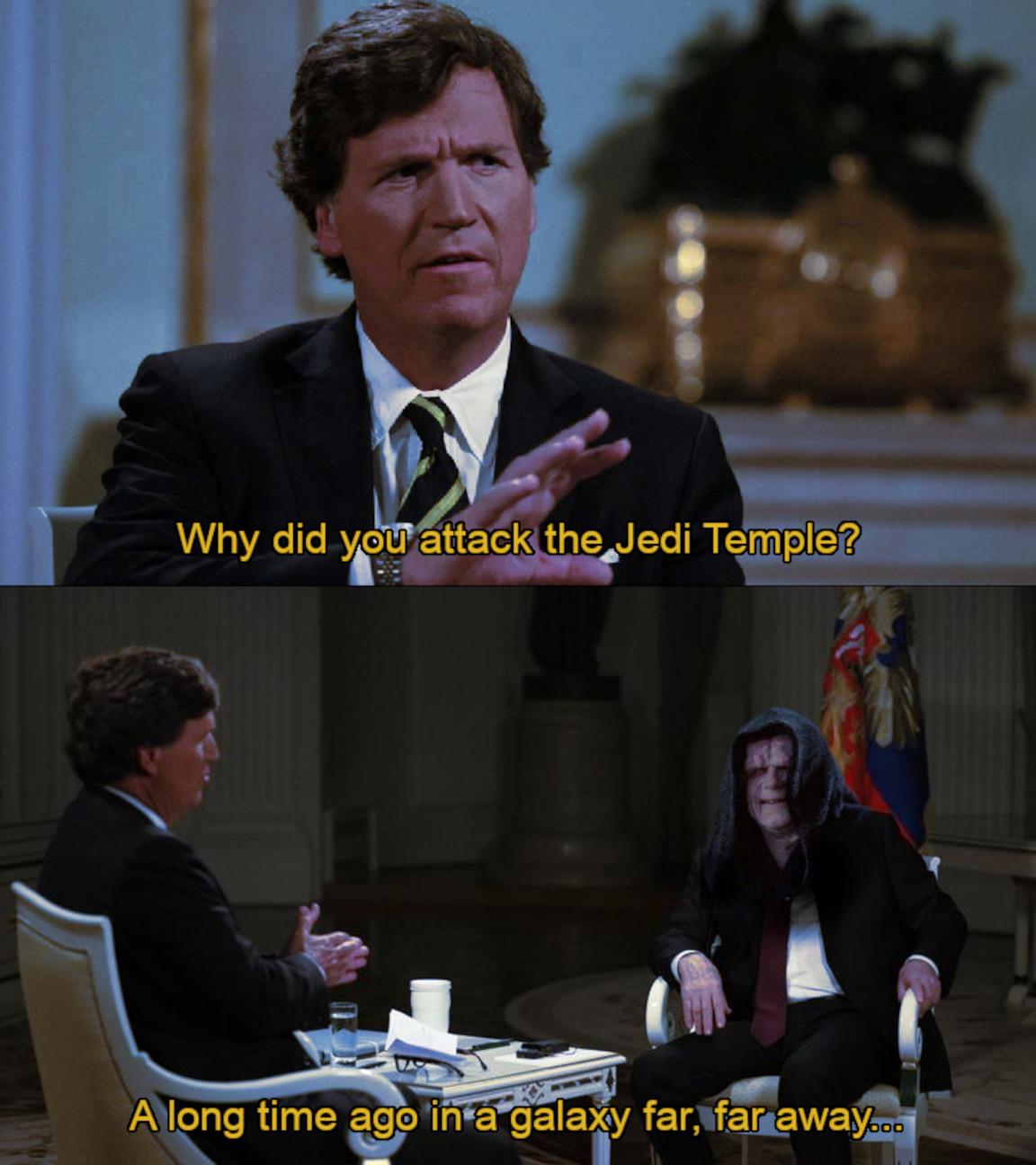 И раз такой унылый поток сознания завизировали и выпустили - то он действительно отражает состояние умов в "башнях" Кремля. А вырезанное Карлсон хоть публично и не покажет - иначе ему вообще больше интервью никто не даст - но его явно посмотрят те, "кому положено".