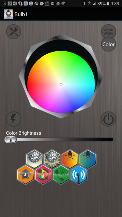 Заходим в меню лампы. И вот там - полное раздолье. Лампа может светить различными цветами, вы можете управлять цветом и яркостью, а так как лампа связана со смартфоном, она умеет реагировать на различные события, происходящие на нем.