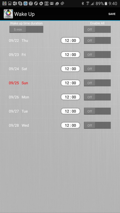 Включение/выключение по расписанию. Это работает только в контакте со смартфоном, поэтому может использоваться в качестве "светового будильника".