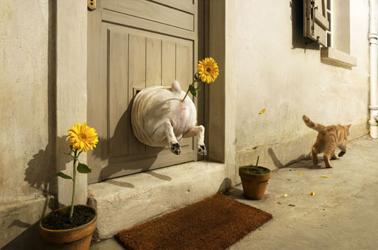 Последнее фото: похоже на удачный парафраз С.Дали: "Сон вызванный полетом пчелы вокруг граната за минуту до пробуждения". Мотив сна(отдыха), кошачий мотив, водная гладь. Перья падают из картины на пол, у Дали тигры также отчетливо стремятся на эту сторону.
