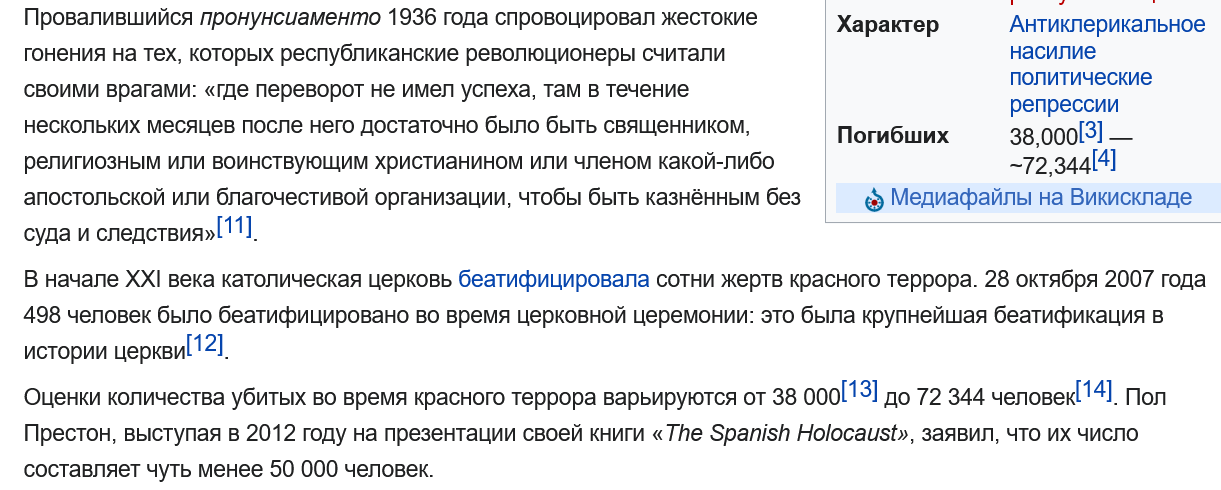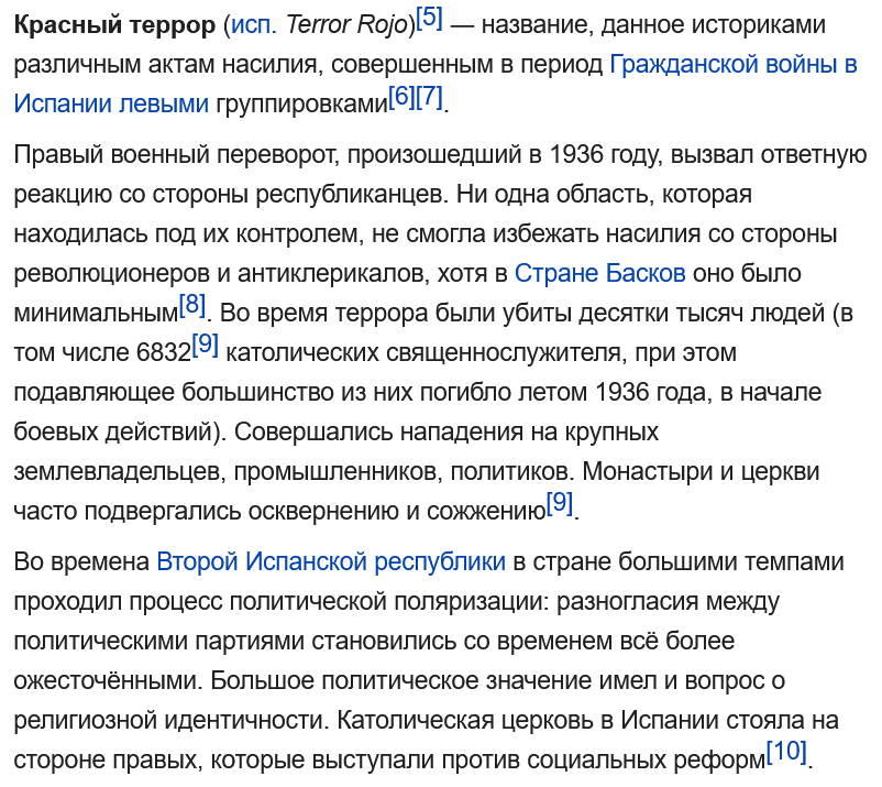 То, что творили республиканцы - особенно, те же анархисты, ПОУМовцы, комми и прочие леваки - республиканцы в Испании - это же кровавая купель, причем не только для монархистов и франкистов, но и для членов их семей, и для католического большинства, и вот сюрприз - для своих же товарищей по левому блоку.