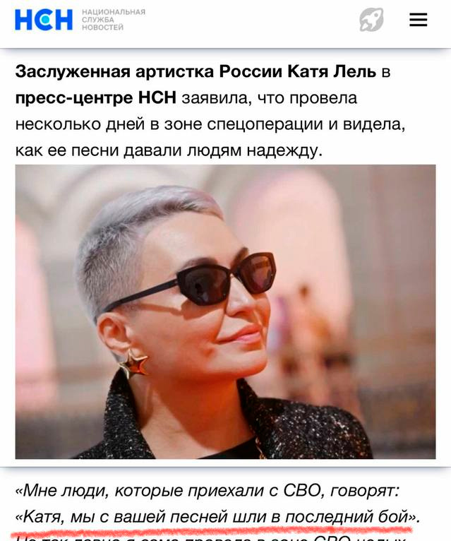 Я если честно нигде не встречал публикаций о её отношении к "СВО", но почему-то был уверен что самое положительное. Иногда ты просто уверен в людях, этому нет объяснения. Вот я тупо знал что она зиганутая, без какой-либо инфы.