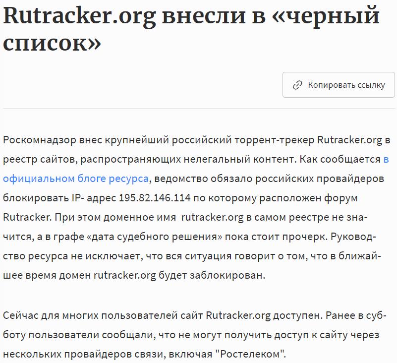 А рутрекер уже черт щнакт сколько лет под блокировками... Один из старейшин, кто на себе испытал и начал противодейтсвовать этому уродам с РКН....