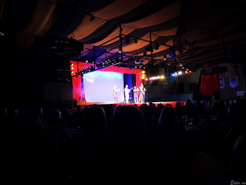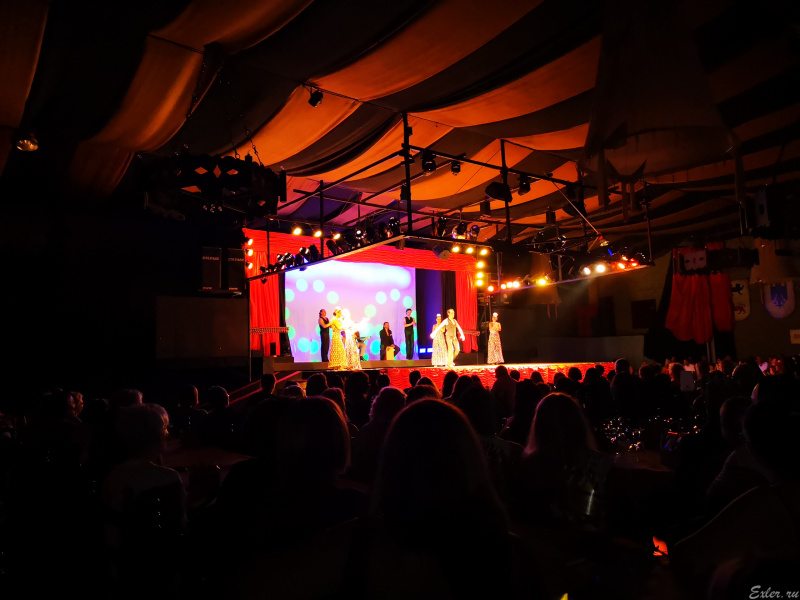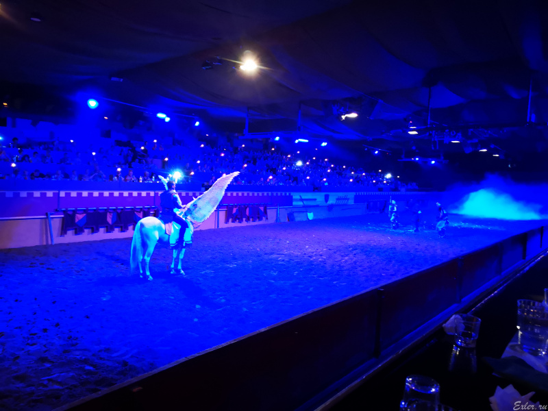 Был на этом шоу, мне тоже понравилось, особенно фламенко. Брызги в зал летели, работали на совесть. Ну и рыцарская тема, столы эти... да нормально. Короны картонные всем выдали. Ну естественно страны болели голосом. Да вполне отличное шоу.