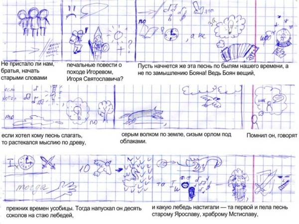 Вот прям новый Фрэнк Миллер растет. Школьник сделал шпаргалку по "Слове о полку Игореве".