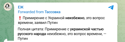 Его фраза "украинская часть русского народа" как раз свидетельствует об отказе от всей Украины, ага.