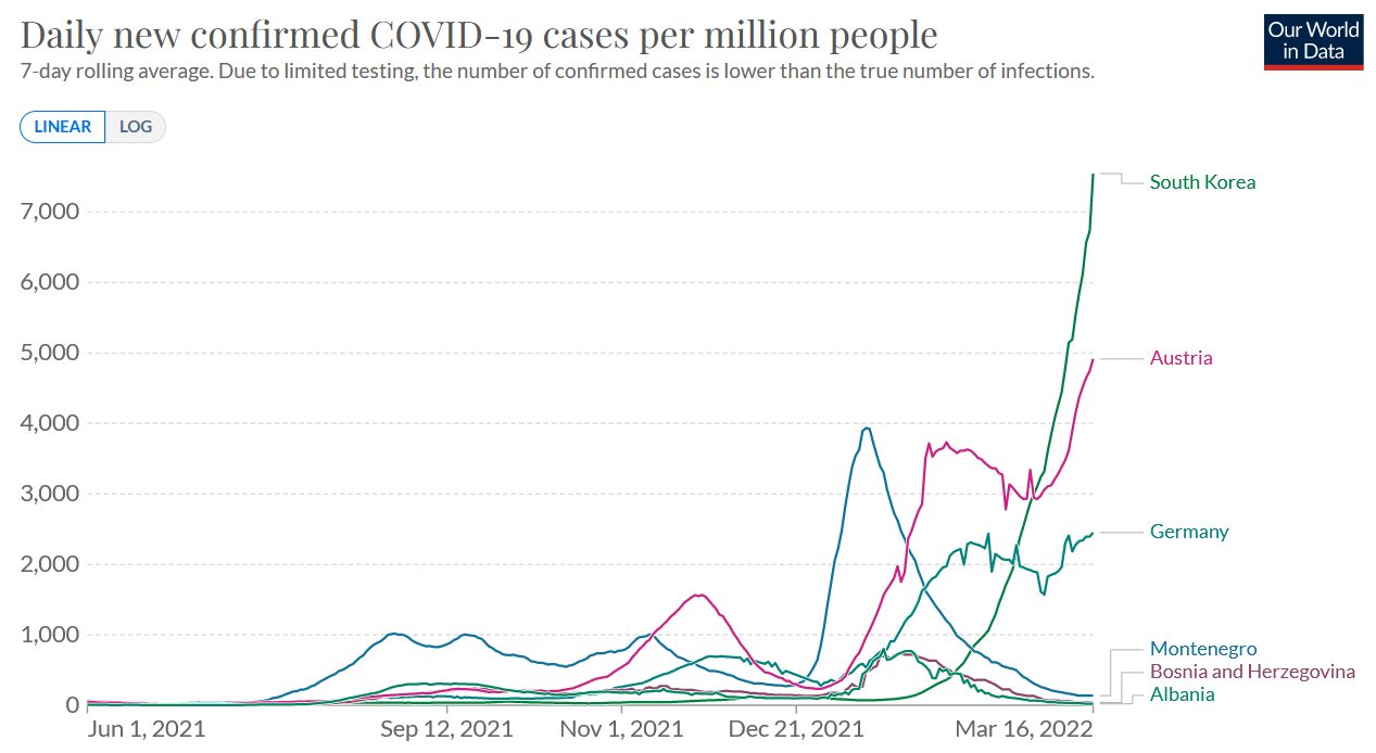 Интересно, что где-то месяц назад в Швеции объявили конец эпидемии, и, соответственно, отмену абсолютно всех ограничений от правительства. Кафе сейчас заполнены, люди без масок сидят и пьют пиво, масок почти не видно. И при этом, количество заразившихся как падало, так и падает. Ни малейшего излома на графике не видно.