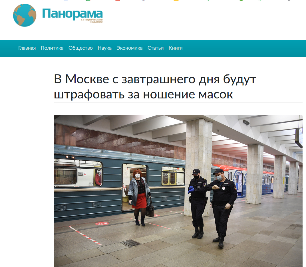 Теперь, по словам Собянина, «стабильное улучшение эпидемиологической ситуации» позволило отменить масочный режим. Агентство сатирических новостей «Панорама» после этого написало, что теперь, наоборот, будут штрафовать тех москвичей, кто носит маски в метро.