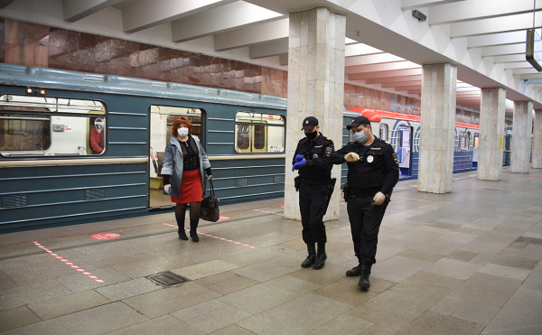 Сегодня в полдень, метро "Пушкинская", диктор вещает по ретрансляции, что носить или не носить маску дело каждого... Т.е. хочешь - носи, не хочешь - не носи. Часть полицейских носит (правда, прикрывают только подбородок)...