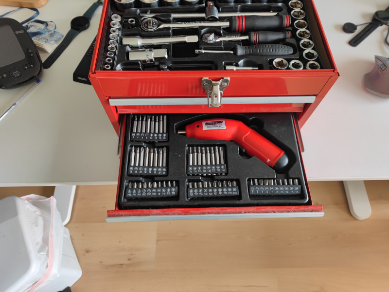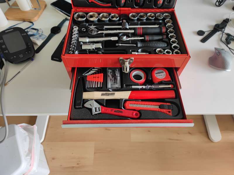 Ну и заодно посоветуйте, плиз, универсальный набор инструментов. А то я купил пару лет назад "настоящее немецкое качество" в немецком же Амазоне, а наборчик, между нами, барахло-барахлом. Вставка верхней части верхнего ряда постоянно вываливается вместе с инструментами, дурдом какой-то.