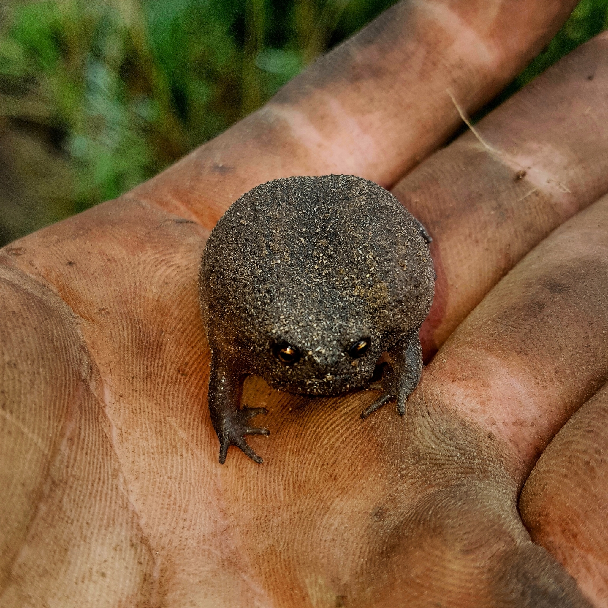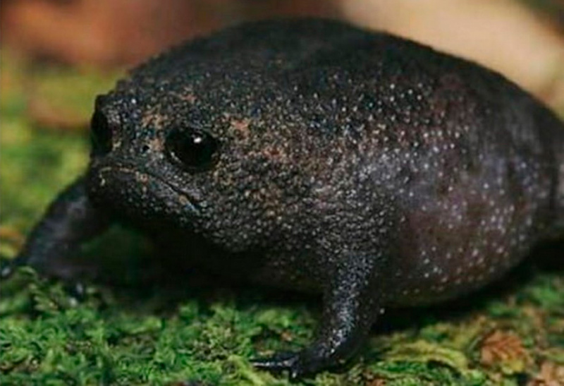 Вот такую красотку присмотрел - это Черная дождевая лягушка (Breviceps fuscus). Грустная, да. Но, с другой стороны, чего ей веселиться-то с такой рожей? Но зато не чужда прекрасному: самцы этой лягушки привлекают самок пением. У жителей Южной Африки существует поверье: если ты услышишь, как поет Черная дождевая лягушка, то ты станешь очень привлекательным для самок твоей расы. Особенно если ты сам умеешь петь и неплохо зарабатываешь.