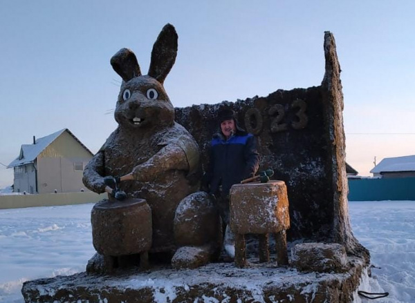 Житель села Уолба Таттинского района Михаил Боппосов, прославившийся своими скульптурами из навоза, представил символ 2023 года.