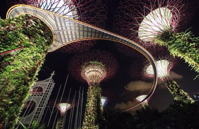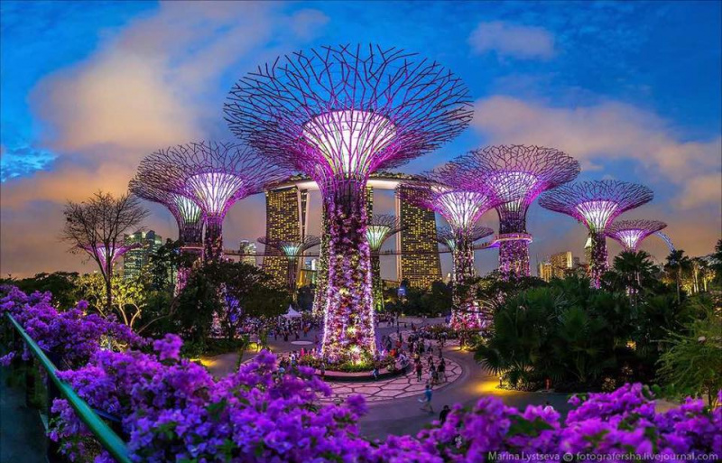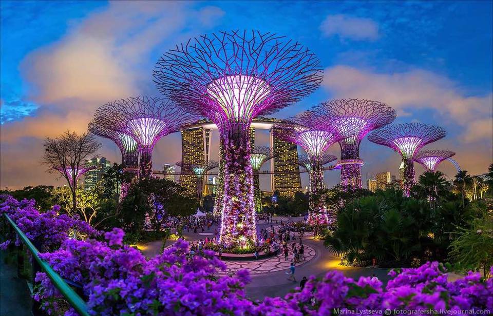 Алекс, если вы не были в Сингапуре, настоятельно рекомендую — это чума! (в хорошем смысле слова). А я как раз успел во время дневного промежутка при пересадке залезть на крышу Marina Bay Sands, испить там Сингапур Слинг и поглазеть на окрестности, с тоской глядя на Gardens by the Bay внизу, куда уже не успевал (это как раз там эти супер-деревья). И уж подавно не мог остаться на вечер, когда это всё феерически расцвечивается.