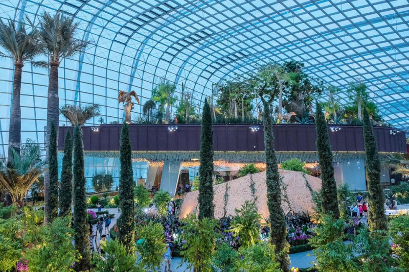 Действительно, смешаны фотографии из нескольких разных ботанических садов Сингапура - Сада Гарденс Бэй, Купола цветов и Сингапурского Ботанического сада (в котором находится знаменитый Сад орхидей). И пара не известных мне садов затесалась...