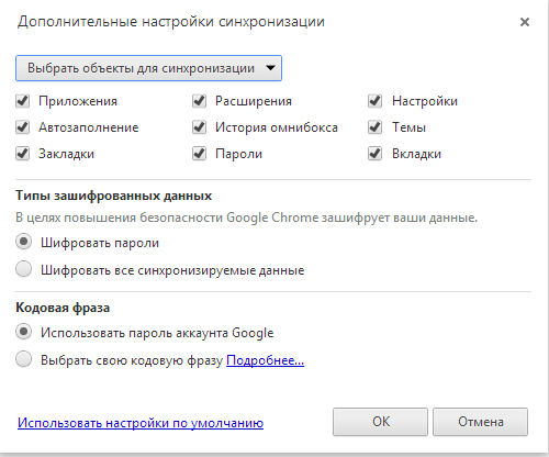Например, в Google Chrome как все сделано? Подключаешь свой аккаунт Google, выбираешь, что именно и как собираешься синхронизировать.