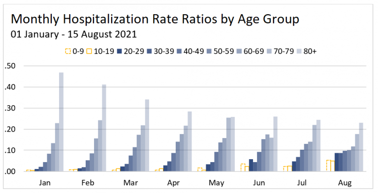 В Каталонии, данные Министерства здравоохранения показывают, что у непривитых людей риск попасть в больницу в три раза выше. Однако возраст сильно варьирует риск тех, кто не привит, по сравнению с теми, кто привит. Согласно общедоступным данным за последние два с половиной месяца, невакцинированные люди в возрасте от 30 до 59 лет, которые в целом более здоровы, имеют в 10-20 раз больший риск попасть в больницу, чем вакцинированные. У лиц старше 70 лет с большим количеством патологий разница намного меньше: в два-три раза меньше госпитализированных (в относительном выражении) тех, кто проходит полный курс лечения.
