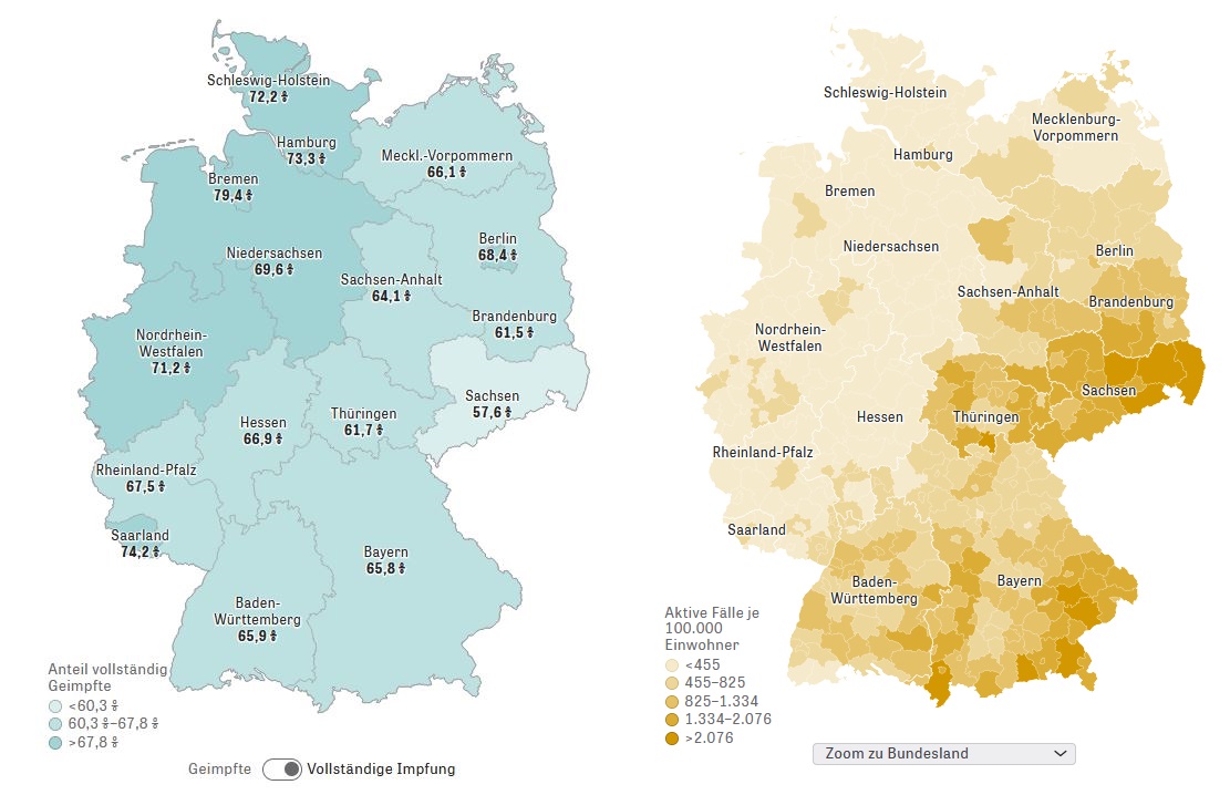 Дам пару картинок из Баварии по заражаемости. Обратите внимание смещение в сторону меньших возрастов. Конечно, нужно иметь в виду, что та волна, что справа, уже была в условиях массовой вакцинации: