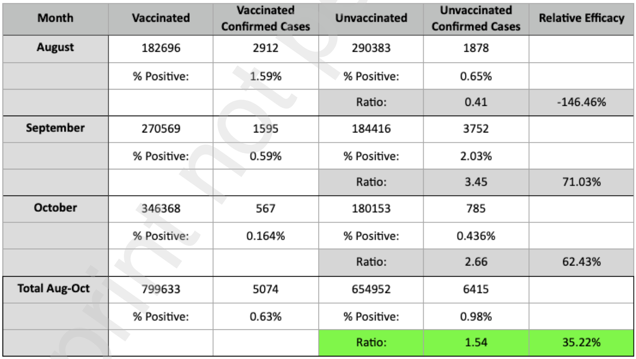 а не по инфицированию, уходит в отрицательную область. Иными словами вакцинированные заболевают больше, чем невакцинированные