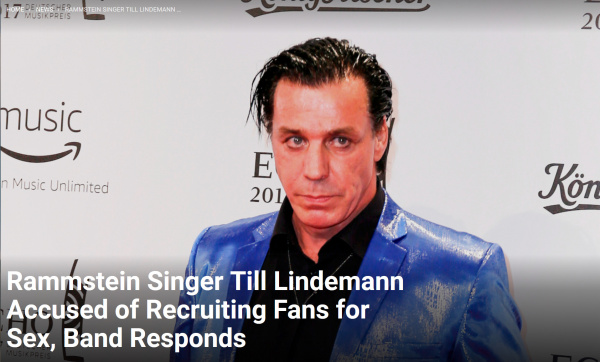 Статья об этом - "Rammstein Singer Till Lindemann Accused of Recruiting Fans for Sex, Band Responds" (Вокалист Rammstein Тилль Линдеманн обвиняется в вербовке фанаток для секса, группа отвечает).
