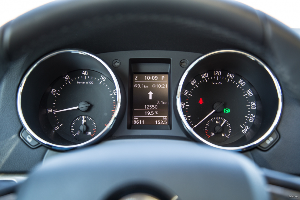 Что там еще интересного? Присутствуют системы ESC (Electronic Stability Control - электронная блокировка дифференциала EDS, которая позволяет плавно и комфортно трогаться с места на дорогах, имеющих участки с разным коэффициентом сцепления.) и ABS (антиблокировочная система). Противотуманные фары оснащены функцией освещения поворотов, но мы это проверить не могли из-за отсутствия тумана. Ещё полезная функция - электронный контроль давления в шинах.