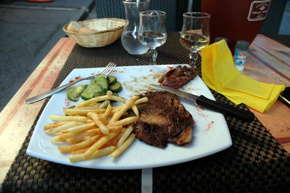 Кстати, антрекот у них оказался совершенно волшебный. Тот же классный стейк, только потоньше. И стоил всего 11 евро. Я заказывал антрекот в каком-то туристическом заведении в Каннах за 20 евро - принесли обгоревшую подошву. Канны, сэр.