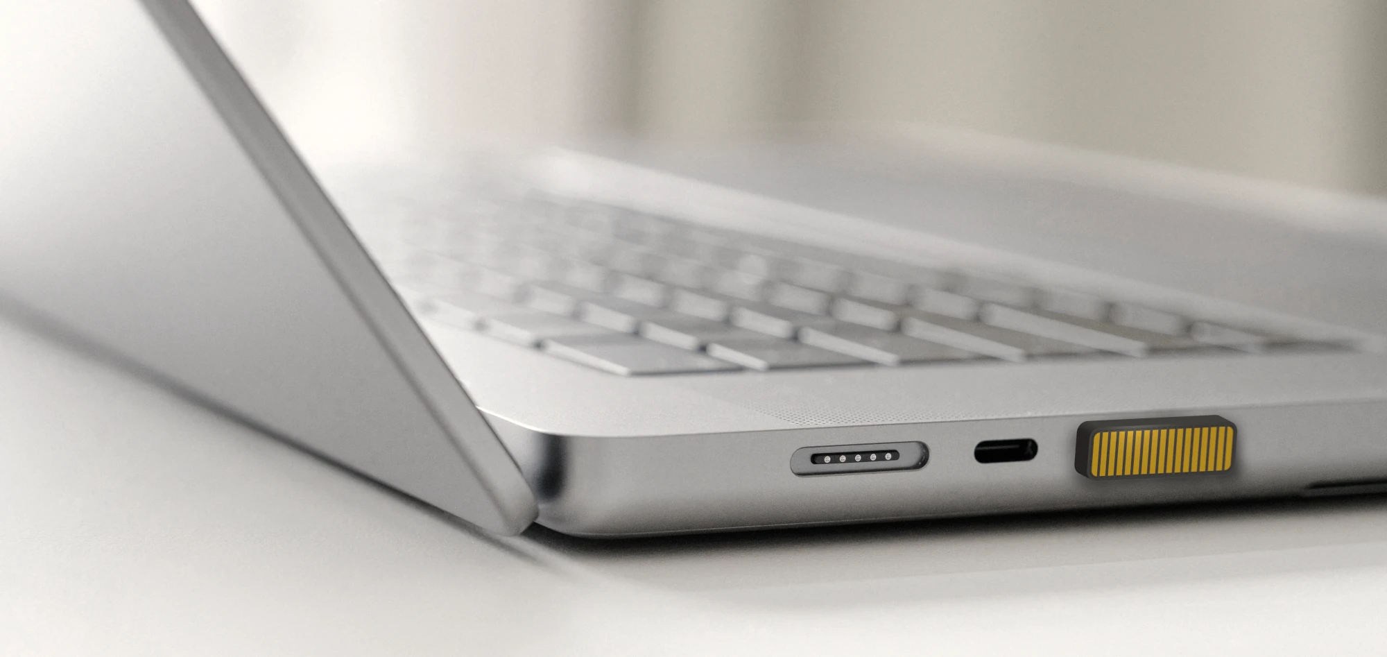 Изобрели кусочек Touch Bar и вставили его в порт USB ноута, которых там обычно и так не хватает.