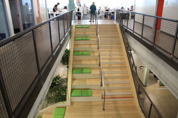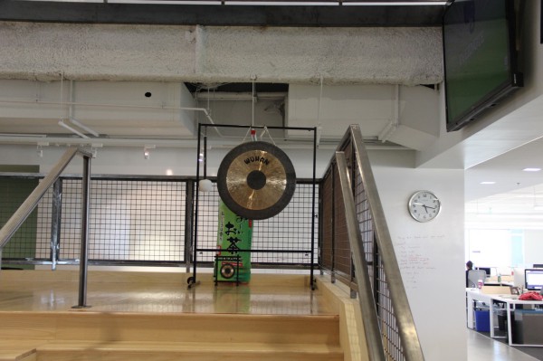 Что интересно, CEO Evernote Phil Libin сидит в центре одного из этажей за таким же столиком среди остальных разработчиков. А когда ему нужно созвать совещание, он бьет вот в этот гонг, и народ собирается прямо на лестнице.