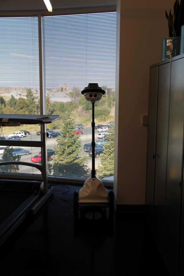 Очень интересовала меня вот эта штучка. Оказалось, что это специальный робот для видеоконференции, которым можно управлять через Интернет. Народ из других офисов Evernote (их семь по всему миру) с помощью этого робота принимает активное участие в митингах.