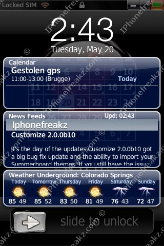 Intelliscreen - еще интереснее. Она практически решает проблему отличия подхода Apple и MS к десктопу коммуникатора. Программа позволяет выводить на окно блокировки виджеты с данными: расписания, почты, SMS, погоды, новостей, спортивных новостей.