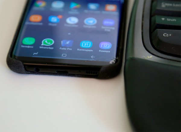 Когда я покупал Samsung Galaxy S8+ в Москве в фирменном центре продаж Samsung, мне продавец настоятельно советовал, во-первых, наклеить на дисплей бронебойную защитную силиконовую пленку, а, во-вторых, приобрести за 7 тысяч рублей полную страховку от различных повреждений смартфона.