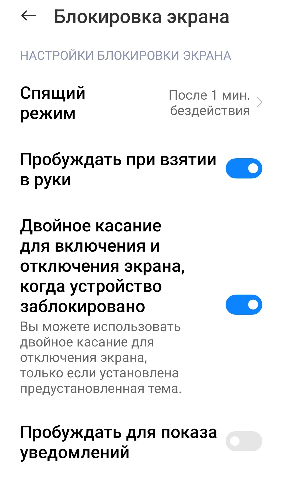 Двойное касание - просыпается экран блокировки со своей заставкой, через несколько секунд гаснет и просыпается "AOD". Ну такое...