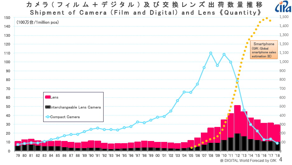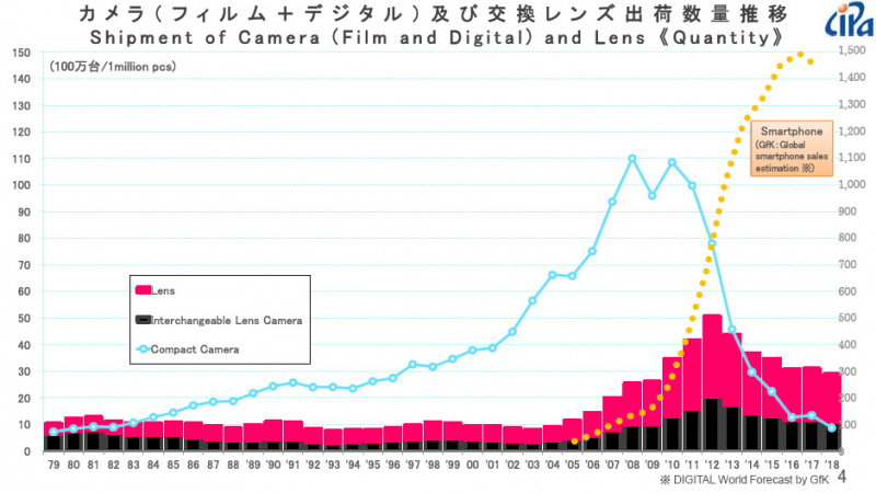 Вот помню пользовался как-то давно (лет 10 назад) Canon eos 450D с китовым объективом, сравнивая с фотками топовых (и выше среднего уровня) смартфонов уже не находишь объяснения в покупке чего-то подобного (я про тот Canon), банально соотношение цена/качество-размер, хватит и смарта, а для задач посерьезнее уже 1 объектива не хватит. В принципе это как и история с плёнкой, пользуются только адепты коих и полпроцента по миру не наберется, нету рынка для них.
