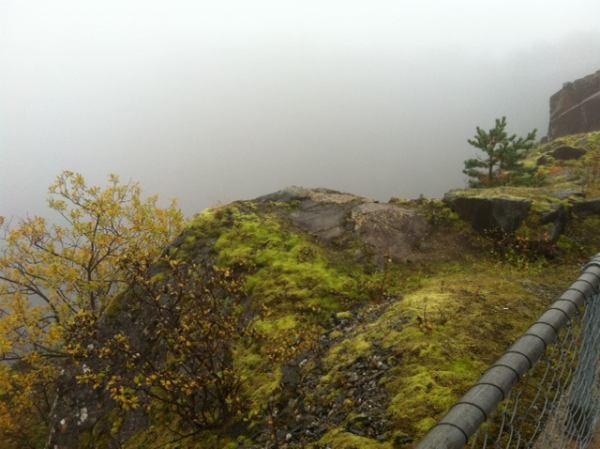 Вот на этот уступ в прошлом году залезла туристка из России - сфотографироваться. Ее снимал муж. Туристка сделала шажок назад, чтобы встать поудобнее - и полетела в пропасть. А лететь там было очень далеко.