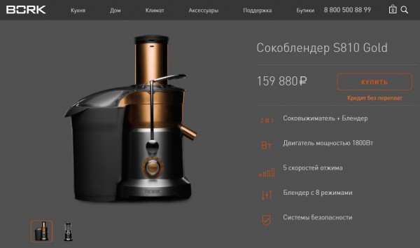 Да что ты про каких-то вшивых американских джюисеров за $400 рассказываешь, улыбнулись в компании Bork? Да вы все как дети, честное слово. Джюисеры-фигисеры. То ли дело - СОКОБЛЕНДЕР за три тысячи баксов! Вот это уже для реальных пацанов, а не для каких-то американских фриков-стартаперов.