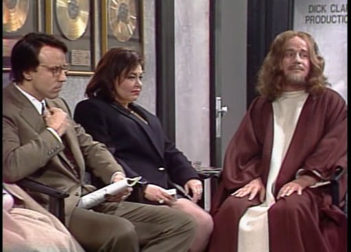 Вот один из лучших скетчей с ним - "Секретарь в офисе Дика Кларка". Язык - английский, причем тут как раз понимание достаточно важно, потому что все построено на диалогах. Это с диска The Bad Boys of Saturday Night Live.