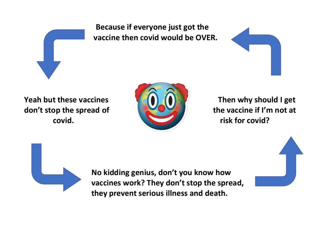 Считается, что в основном все - стадо, не понимающее ничего. Ну вот тупыыыые. Надо ими управлять, надо их оберегать. Сами-то людишки - глупые, не осознают опасности, дай им волю - начнут собираться вокруг бочек и пить пиво. А только кто усомнится в том, что эти «меры» вообще должны иметь место, усомнившегося тут же крестят «антиваксером» и начинают клевать, благо вам в помощь куча графиков и «исследований» ученых.