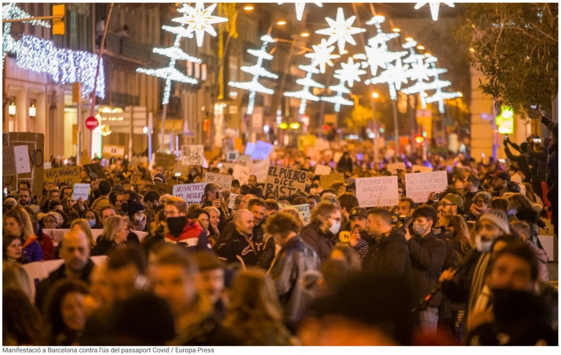 В эти выходные в Барселоне снова были многолюдные протесты против введения ковид-паспортов - "La protesta contra el passaport Covid al centre de Barcelona guanya força".
