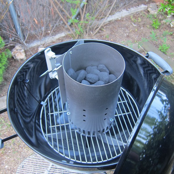 В цилиндрик засыпаем уголь. На решетку барбекюшницы ставим пару спиртовых таблеток (они входят в комплект) зажигаем, на них ставим цилиндрик с углем.