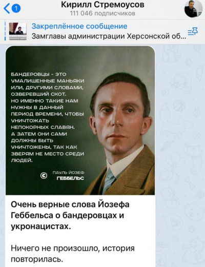 Гауляйтер Херсонской области Стремоусов (фамилия-то какая говорящая) сослался на безусловного морального авторитета.