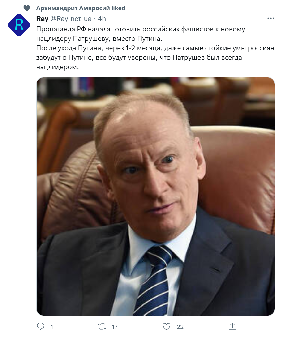 Патрушев - лысый. Он не вписывается в схему "лысый - волосатый" 😜