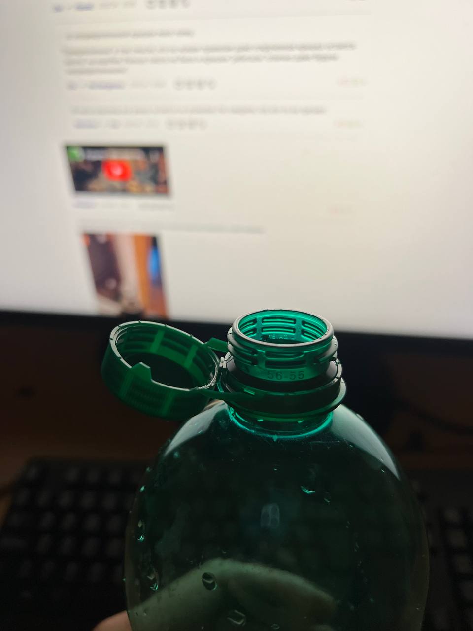 Но тут другая напасть! Когда крышку отрываешь, там остается торчать острый кусок пластика. И никак не удается эту крышку оторвать так, чтобы этот кусок не торчал. Если пить из такой бутылки, то всегда есть риск оцарапать торчащим куском губу, что я несколько раз и сделал.