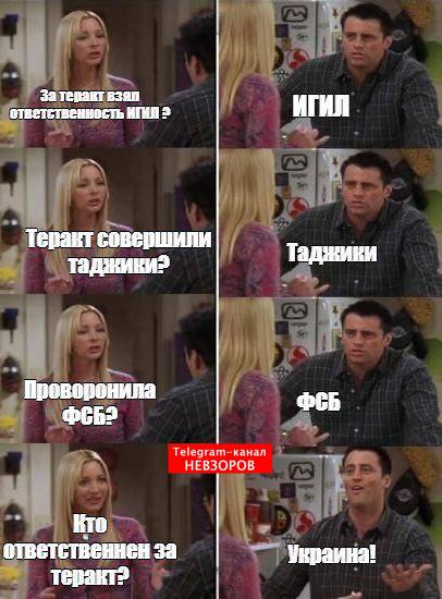 Версию Путина о причастности Украины комментировать не буду. Понятно, что он пытается порешать свои задачи, севши на хвост произошедшего. Но это не имеет отношения к тому, что, как и почему делалось 22.03 (тут послушайте Ширяева, а не пропагандонов с разных сторон), и тому, что делается сейчас. А сейчас не боевые действия против Украины интенсифицируются, а миграционную политику начинают закручивать да таджиков гоняют. Значит, в версию виновности Украины никто и не верит.